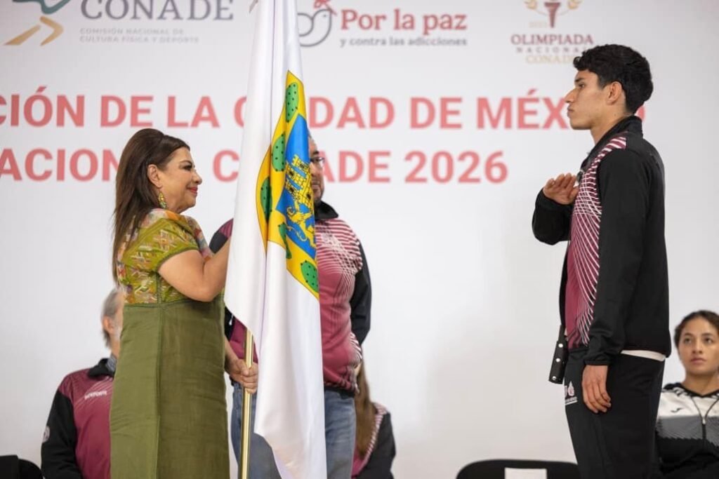 La Jefa de Gobierno, Clara Brugada Molina, encabezó el acto solemne de abanderamiento a la delegación de la Ciudad de México rumbo a la Olimpiada Nacional de la Comisión Nacional del Deporte (Conade) 2026, para quienes anunció diversos apoyos, de hasta 20 mil pesos para quienes alcancen medallas de oro.