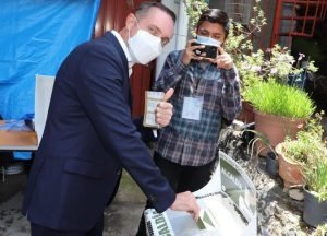 Tras depositar su voto en la casilla 3537 de la colonia Benito Juárez, Adolfo Cerqueda Rebollo, candidato de Morena a...