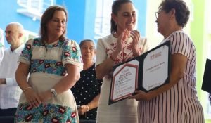 >> La Jefa del Ejecutivo Federal también entregó constancias a 20 familias con ajustes en sus créditos, 20 liberaciones, 500...