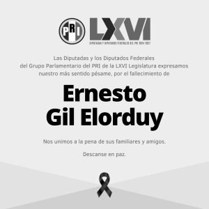 Las y los diputados federales del PRI, coordinados por Rubén Moreira Valdez, lamentaron el sensible fallecimiento de Ernesto Gil Elorduy,...